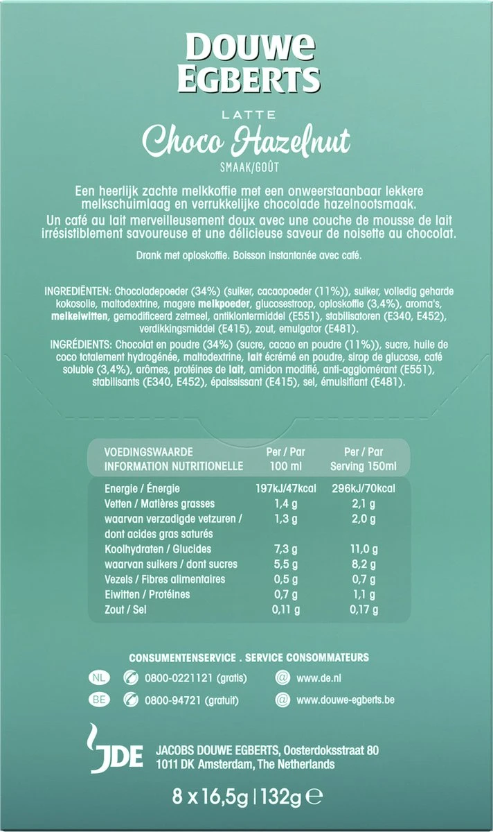 Douwe Egberts Latte Choco Hazelnut Oploskoffie – 5/9 Intensiteit – 5 X 8 Zakjes